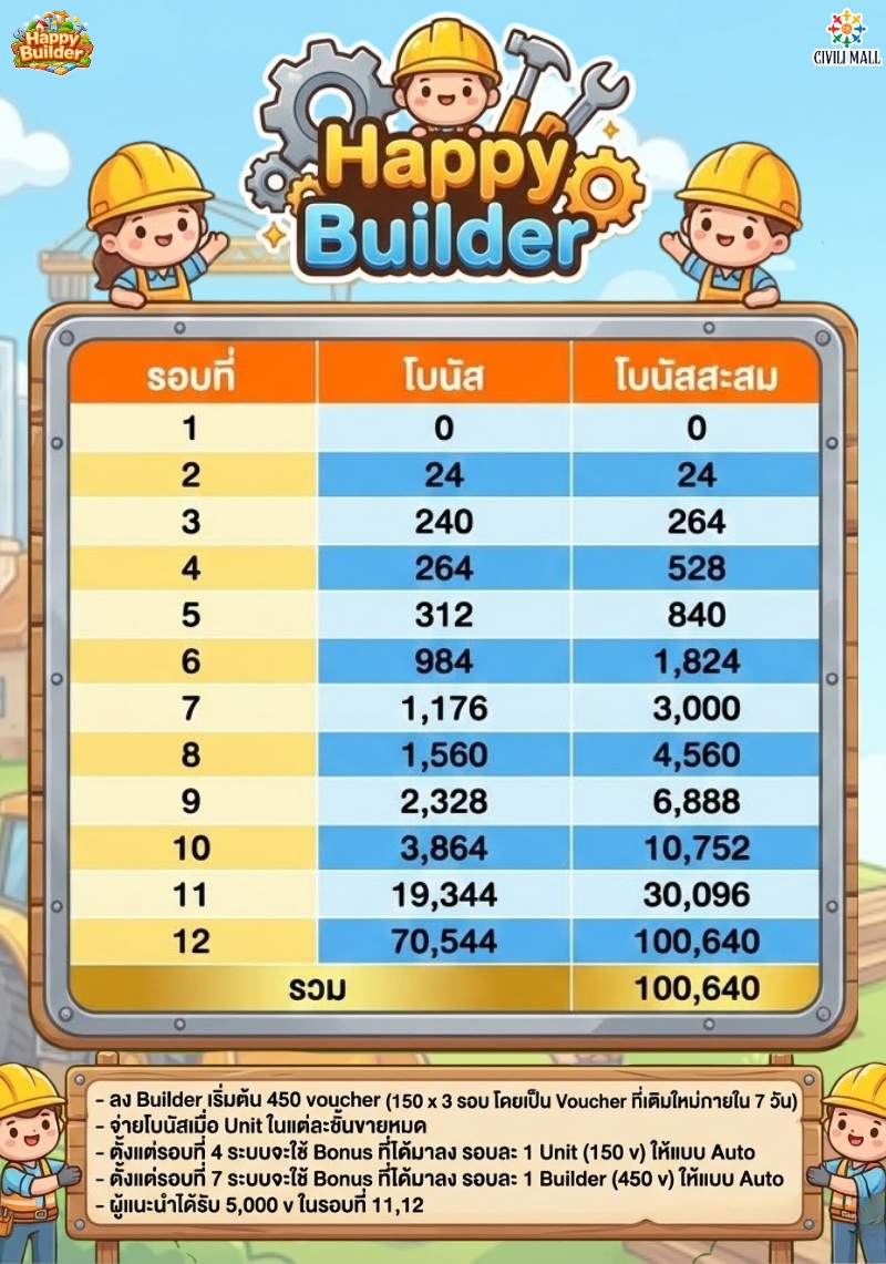 | TH6600482 | S.S.S.S.CIVILI MALL TH | Leader | จำนวน Builder : 0 | |